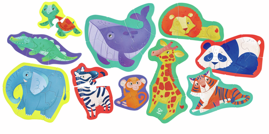 LOS AMIGOS DE LA JUNGLA - 10 PUZZLES EVOLUTIVOS - HAPE