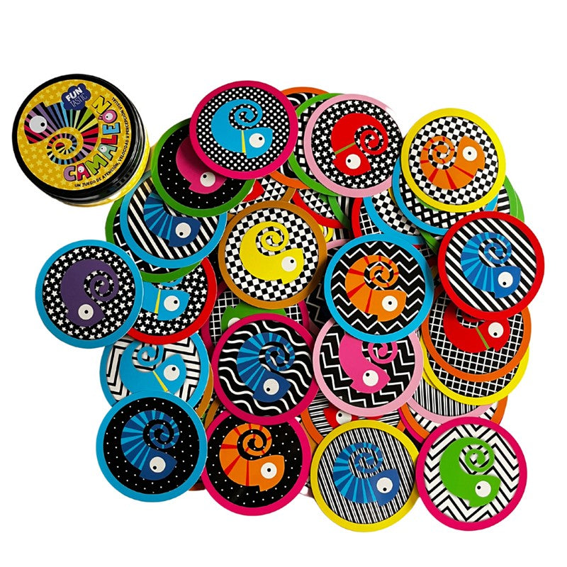 - El objetivo es ser el primero en quedarse sin cartas, asociando cada una de ellas con una de las cartas del centro, ya sea porque tienen el mismo camaleón, el mismo margen de color o el mismo estampado de fondo.