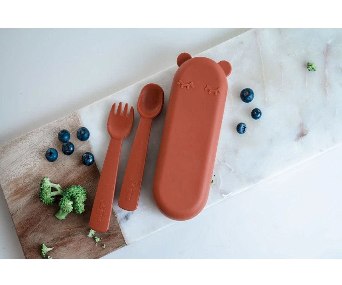 Este conjunto de tenedor y cuchara de silicona Feedie, de We Might Be Tiny, son ideales para que los peques utilicen para aprender a comer por su cuenta