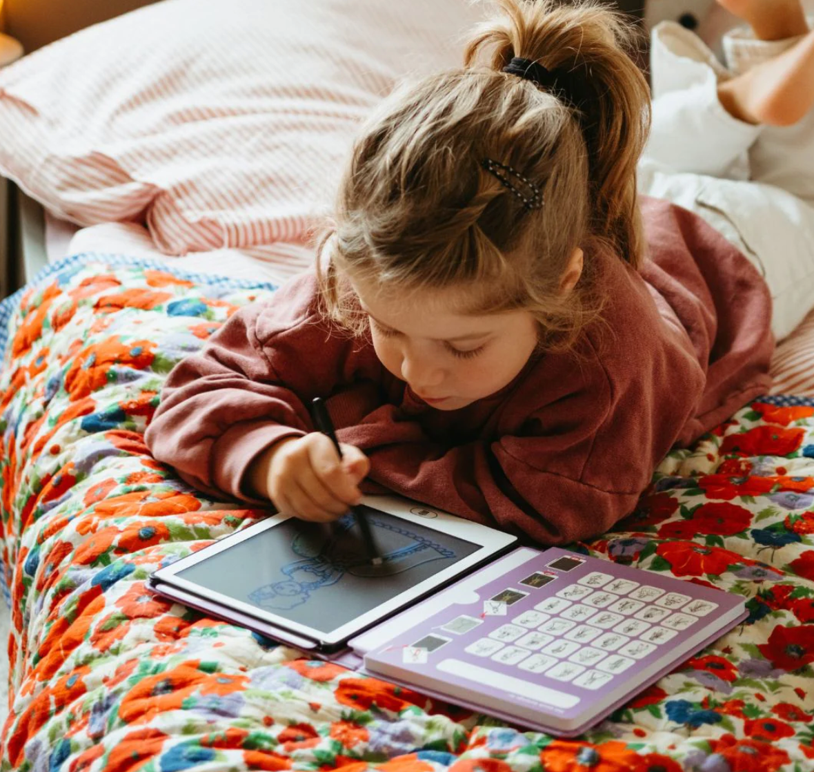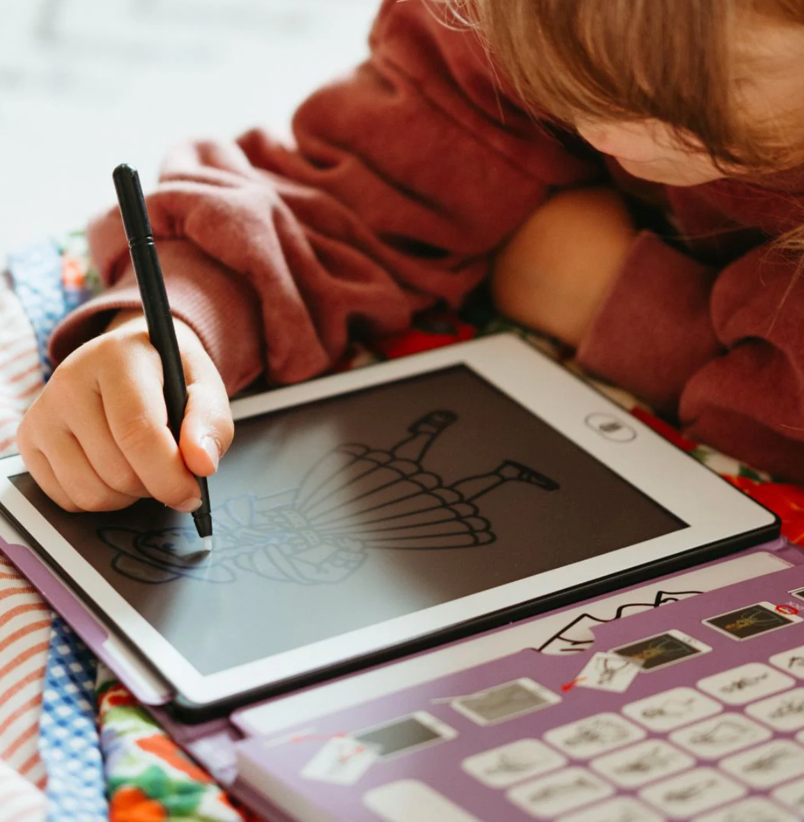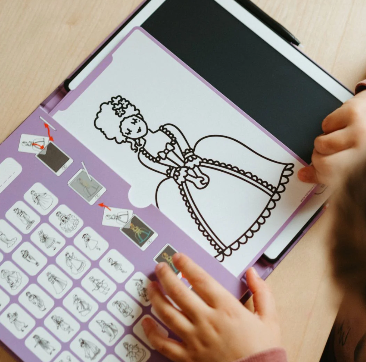 Dale a tu hijo una experiencia de dibujo sin límites con KIDYDRAW-MINI, un cuaderno de dibujo con pantalla LCD que incluye 30 ilustraciones para calcar y 5 temas únicos.